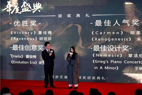 2016年中国好声音杭州赛区冠军马天培在闭幕式现场带来了由我校影视技术系教师林彦汝作词作曲的原创歌曲《梦和太阳之间》的吉他弹唱,舞蹈系15级毕业生邵方静带来女子现代独舞《新世纪》,用弹唱、舞蹈等不同的表演形式,表达了新时代青年对于梦想的不懈追求与渴望,点燃了现场气氛。