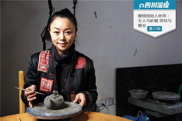 林萍与荥经黑砂的相遇,可以说是一场命中注定的“缘分”。专职画画的她,经常会去各个窑口画画,一次机缘巧合,她受雅安市之邀为荥经砂器做艺术提升,这一去就与荥经砂器结下了一生之缘,用林萍的话来说,就是“在荥经发现了宝”,由此可见她对荥经砂器的痴迷。一个外来女子,就这样毅然留在了荥经。关于荥经砂器的一切,她都要从头开始学起,难度可想而知。林萍于2014年成立了“荥经林氏黑砂文化发展有限公司”,创立了“雅烧”黑砂品牌,并自封为“雅烧堂主”,成为荥经当地第一个外来的制陶女艺人。