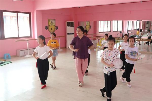 在松阳县玉岩实验教育集团,戏剧系教授孙丽萍带领支教小分队师生与该校“松阳高腔”社团的17名同学结成对子,进行为期5天的集中辅导。在下午的课程中,17名同学被分成花旦、小生两个小组,老师们耐心讲解每一个动作细节,同学们认真领悟每一个动作要领,反复练习,让在场的每一位都感受到了中华传统文化的魅力。