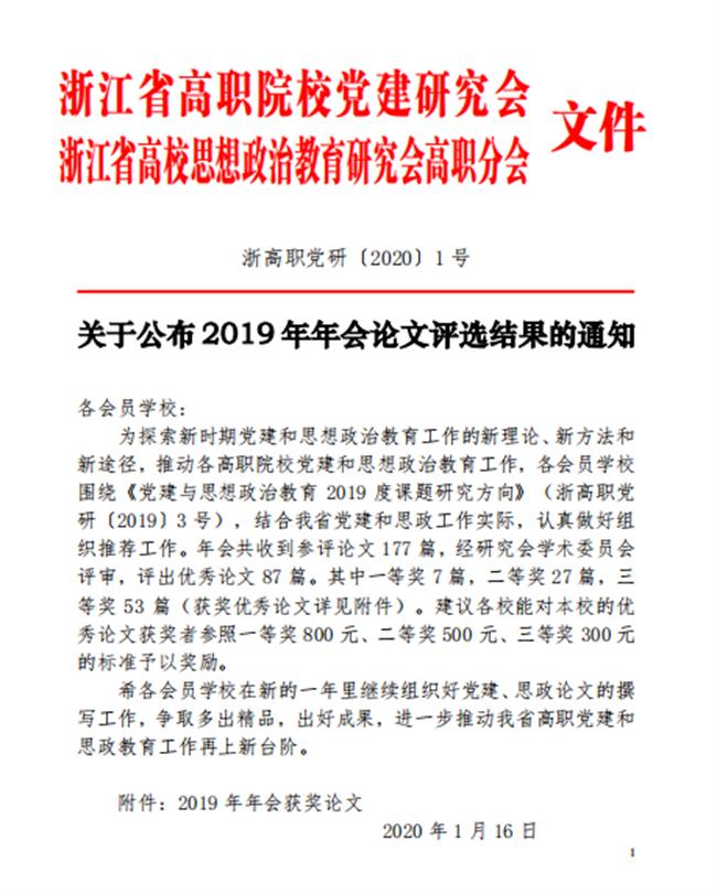 我校在省高职党建和思政2019年年会论文评选中获佳绩