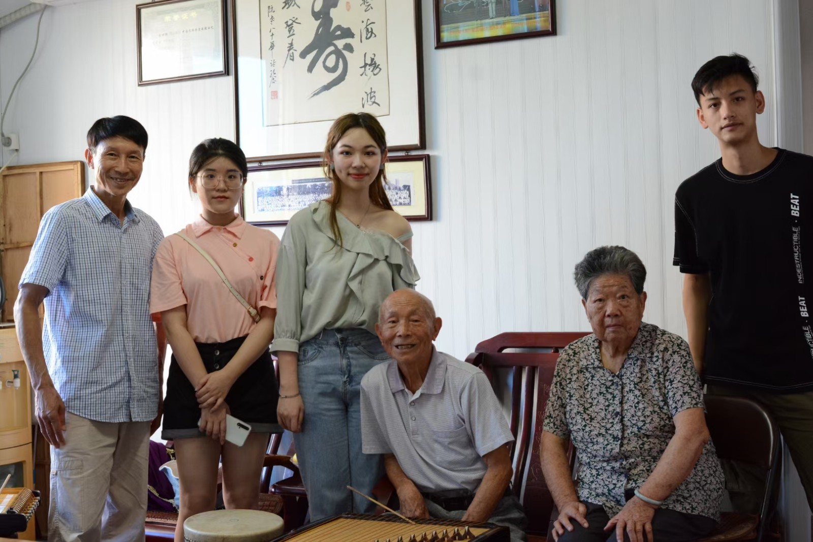 这次前往瑞安,拜访了90多岁的鼓词先生阮世池老师一家,还由现在瑞安罗阳曲艺团团长林秀珍老师带着我们前往拜访她的鼓词老师凌云老师一家,最后又拜访了牛筋琴制琴匠陈万积先生。老师们都十分亲切热情,非常耐心将他们的过往经历,关于鼓词、牛筋琴的各种历史,现状都细细讲解给我们听,时不时也会唱上几段让我们听听。阮世池老先生说自己的嗓子早已不如从前,但一演唱起来依然风韵十足,完全是“老将不老,壮志犹存”。
