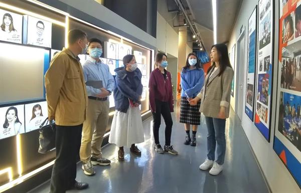 调研中,调研组听取了海马体莱思学院负责人的介绍,了解了企业经营状况、发展规划,并参观了企业的摄影棚、化妆间以及后期制作教室等实践场所。