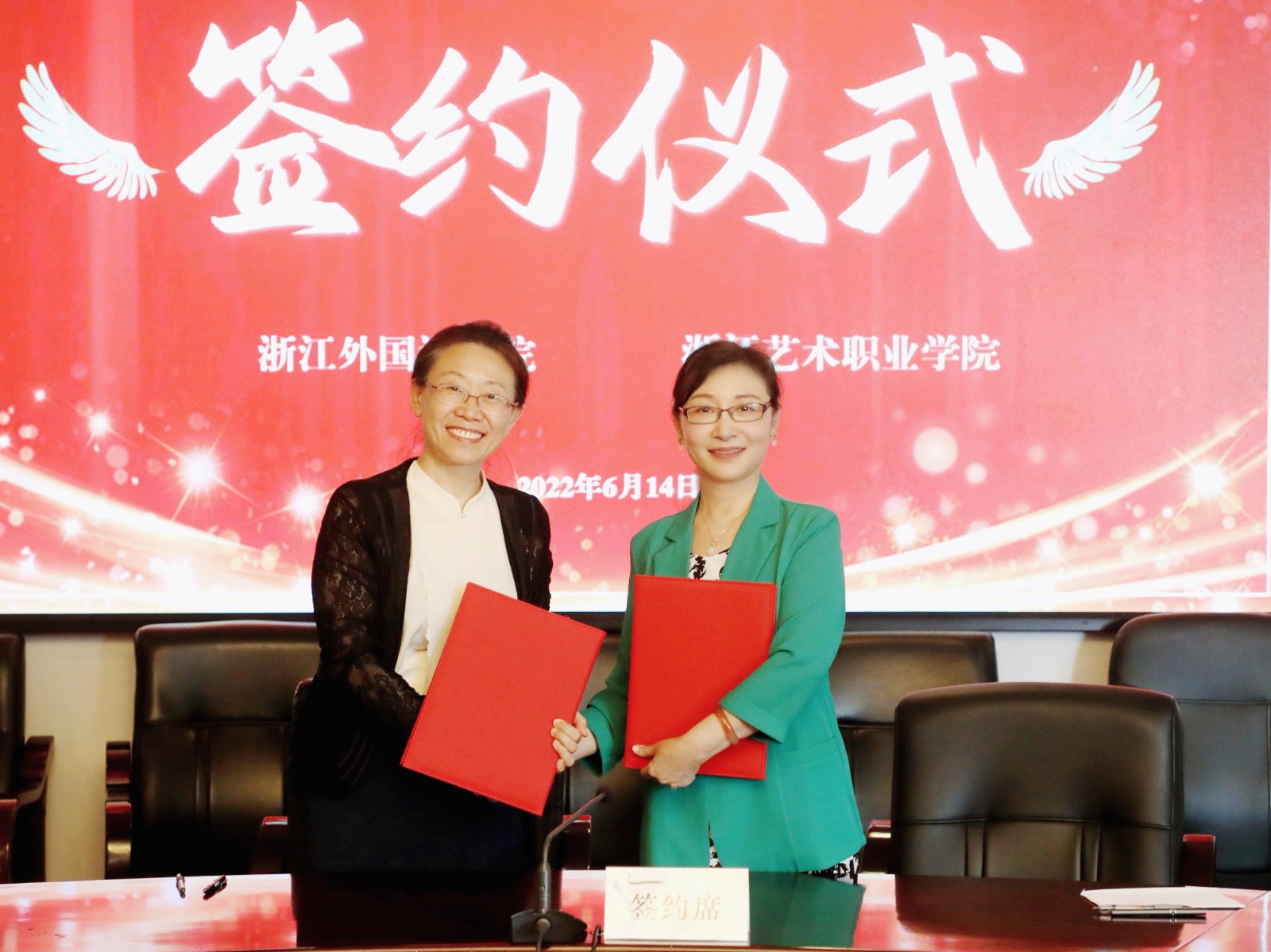 签约仪式上,黄杭娟与柴改英代表两校正式签署战略合作协议,当双方的双手紧紧相握,现场响起了热烈的掌声。
