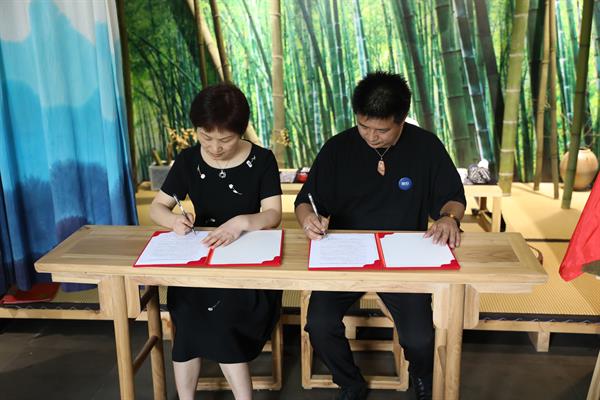手工艺学院党总支书记、副院长金银琴与叶其丹签署产教融合协同育人协议并进行产教融合实践教学基地授牌仪式,共同开启培养传统工艺新人新篇章。