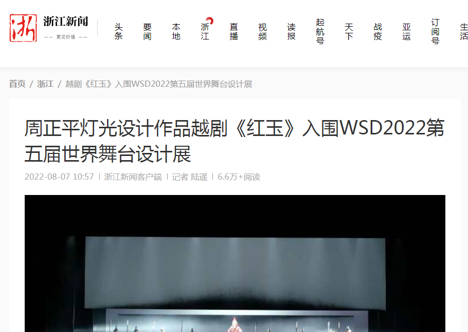 浙江新闻:周正平灯光设计作品越剧《红玉》入围WSD2022第五届世界舞台设计展