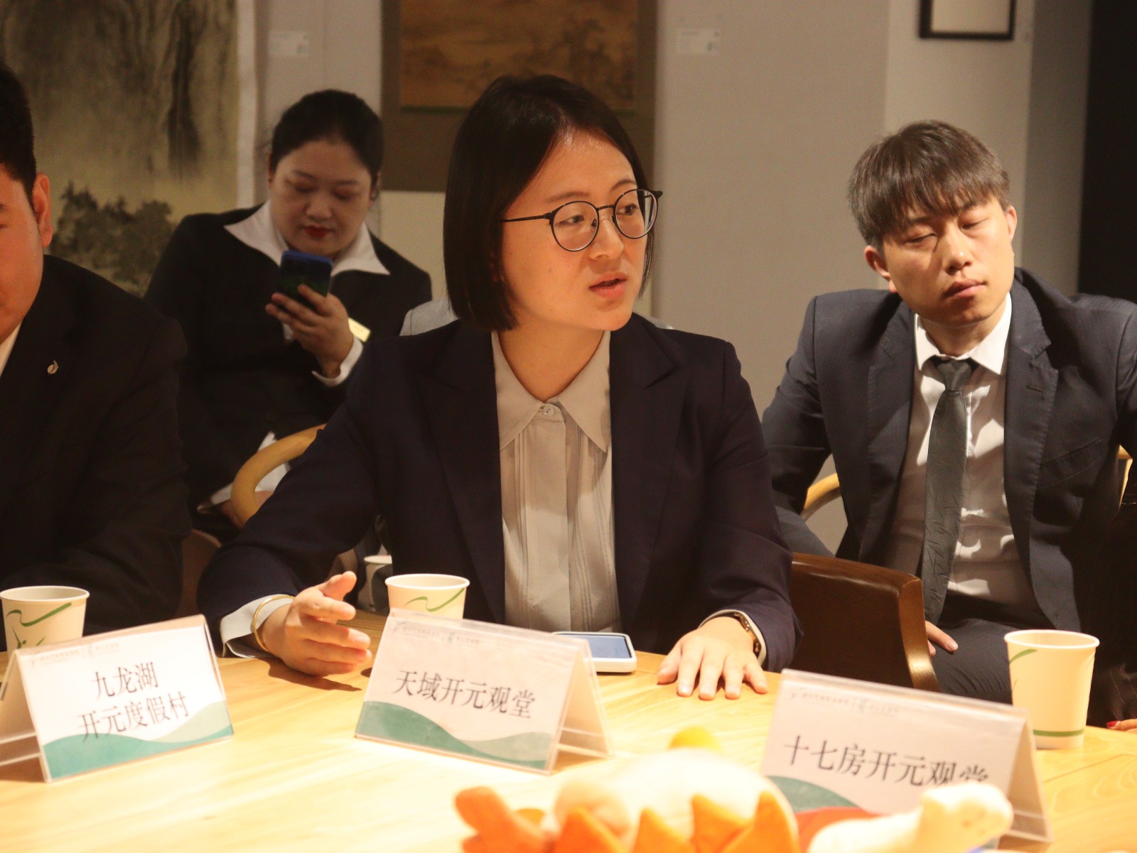 洽谈会伊始,杭州开元名都大酒店总经理陈利江 、嵊州开元名都大酒店总经理吕刚、海宁开元名都大酒店经理项承、绍兴大禹开元观堂总经理吴文君、千岛湖开元度假村总经理李宁、九龙湖开元度假村总经理刘志武、天域开元观堂总经理夏晓洁、十七房开元观堂总经理余国芳等,就酒店的文化内容植入、文创空间营造、非遗集市打造等提出了合作意向。