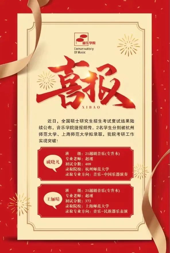 喜报|音乐学院两名学子在浙艺圆了考研梦
