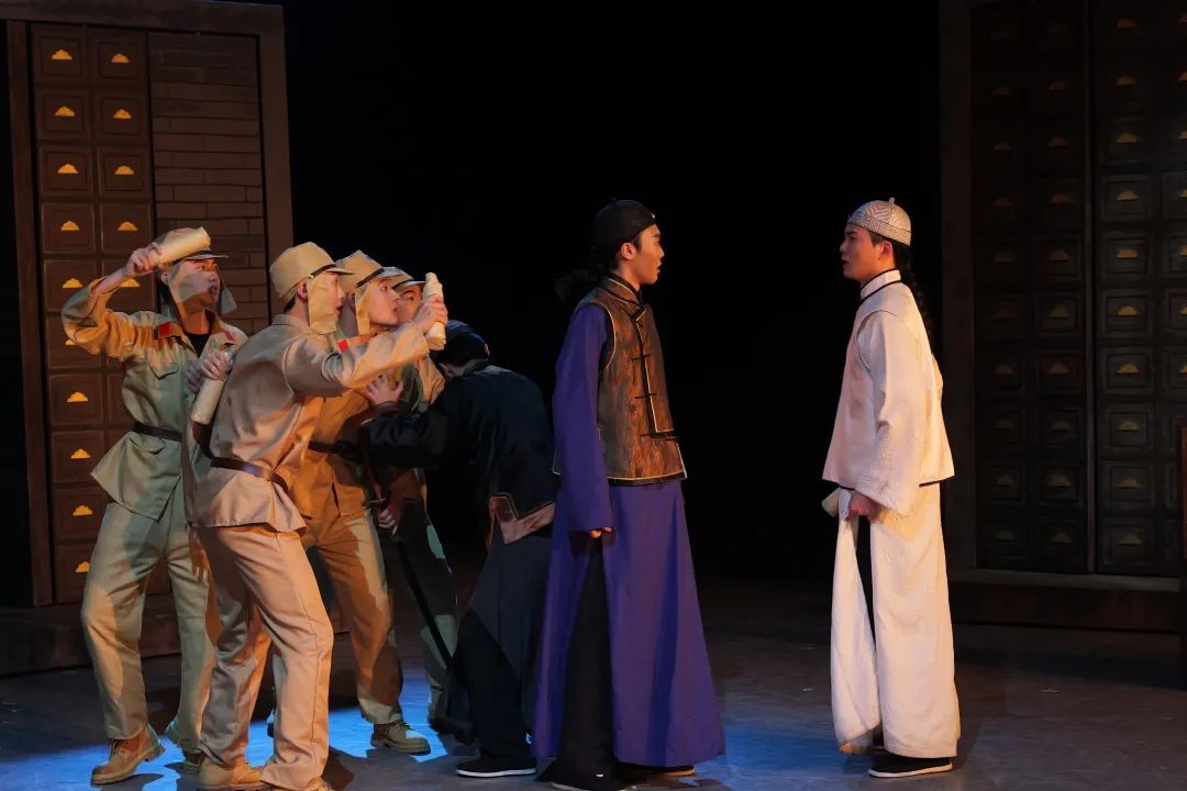 话剧《大宅门》围绕一块“百草厅白家老号”的牌匾展开,再现了医药世家白府的百年变迁,映射出时代的沧桑巨变。学生们通过表演,塑造出剧中诸多有血有肉、鲜活立体的人物:大半生游手好闲、最后看透世道的白景琦,临危受命、振兴家族的二奶奶白文氏,身世悲苦的杨九红,机智伶俐的贫家丫头李香秀……