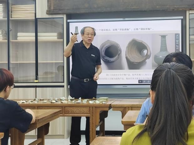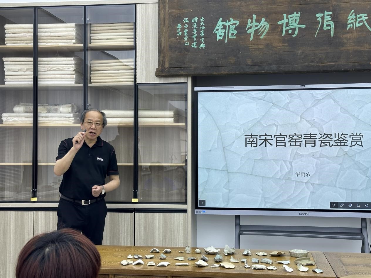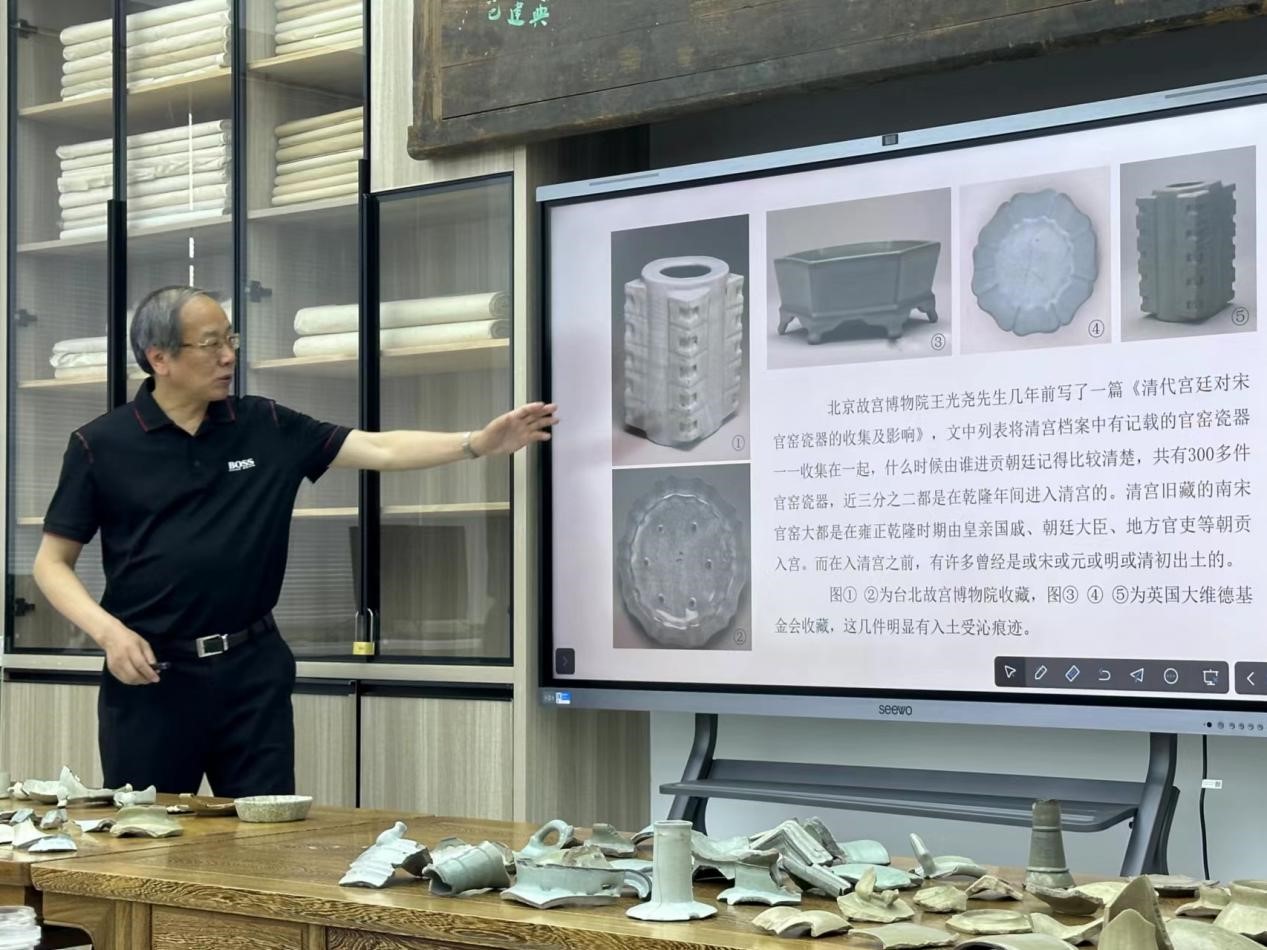 本次讲座,华雨农老师通过自身三十余年在南宋官窑领域探研积累的知识,结合他多年来收藏的南宋官窑瓷片进行讲述,让民族传统技艺专业、文物修复与保护专业的同学能够近距离感受到南宋官窑瓷器的胎、釉、形。