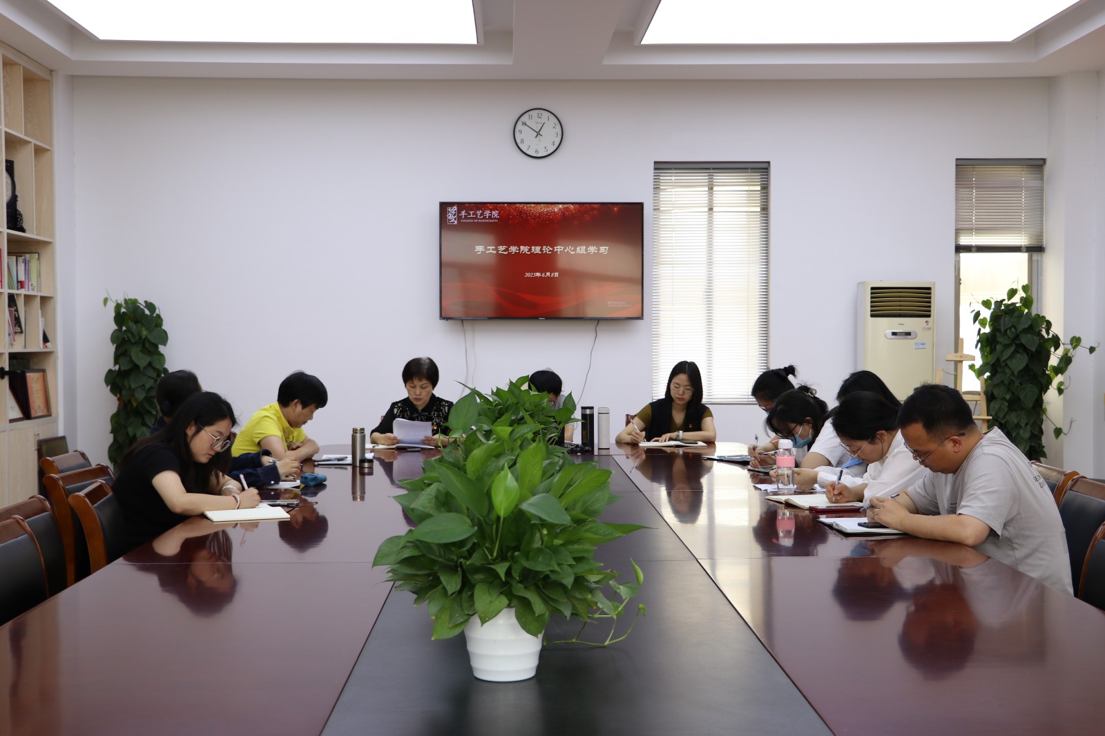6月8日,手工艺学院开展6月主题党日活动暨理论学习中心组学习。全体党员教师及理论学习中心组成员参会,会议由党总支书记、副院长金银琴主持。