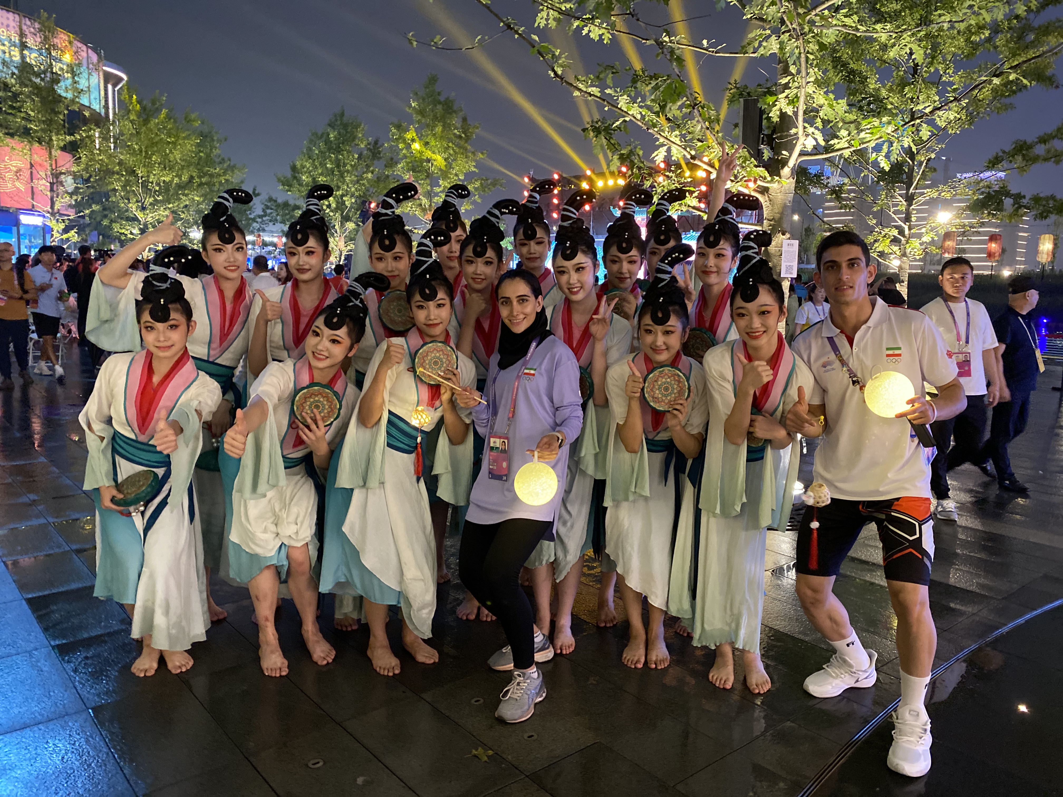 秋风拂面,丹桂飘香。整场晚会时而欢快喜悦,时而婉转悠扬,传达出中国传统文化的厚重与温度,营造了独属于杭州的浪漫氛围。演出期间下起了淅沥小雨,但台上台下互动氛围热烈,外国友人纷纷和采莲女合影留念。